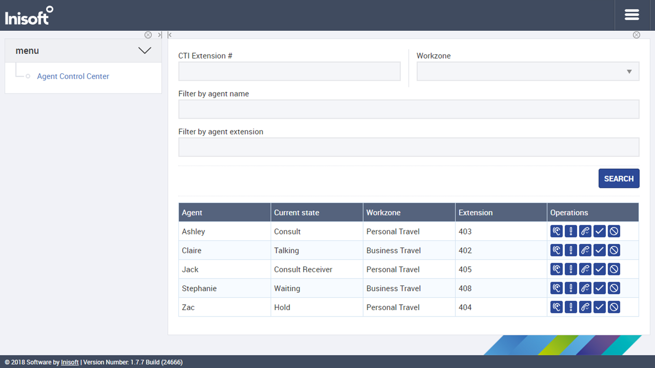 - Operations: Shows buttons to listen, barge, leave, force ready or force not ready.