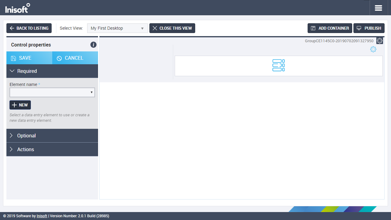 Now let’s add a control to our desktop: we’ll add a data entry element.