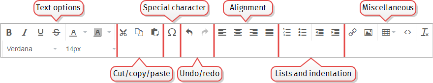 The toolbar lets you do things like change the font, insert special characters, and center text.